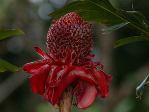 Om half zeven was ik ook aangekleed, telelens erop en op zoek naar Bas. Hij zag al van alles, alleen… probeer het maar eens scherp op de foto te krijgen als alles beweegt, vliegt of nét achter een tak zit. Maar de omgeving… wauw. Wat een groen. Overal exotische planten die hier gewoon in het wild groeien, zoals heliconia’s. Heel bijzonder om te zien.